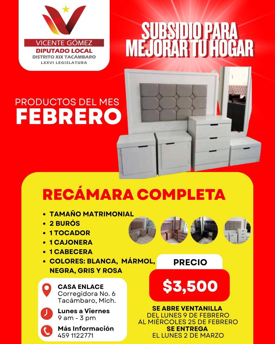 El diputado invitó a las personas que quiera acceder a este beneficio a acercarse a las oficinas de la Casa Enlace Tacámbaro, calle Corregidora #6, en un horario de 09:00 a 15:00 horas.
