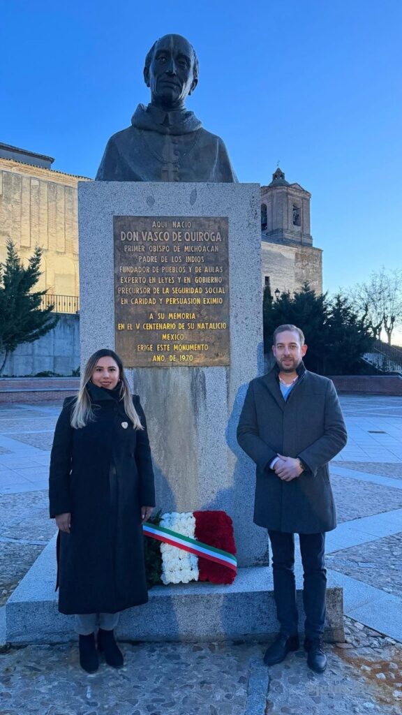 Madrigal de las Altas Torres, España, 16 de marzo de 2026.- En un acto cargado de simbolismo histórico y cultural, la presidenta municipal de Salvador Escalante, Dayana Pérez Mendoza, participó en la colocación de una ofrenda en Madrigal de las Altas Torres, España, lugar de nacimiento de Don Vasco de Quiroga, mejor conocido como Tata Vasco.